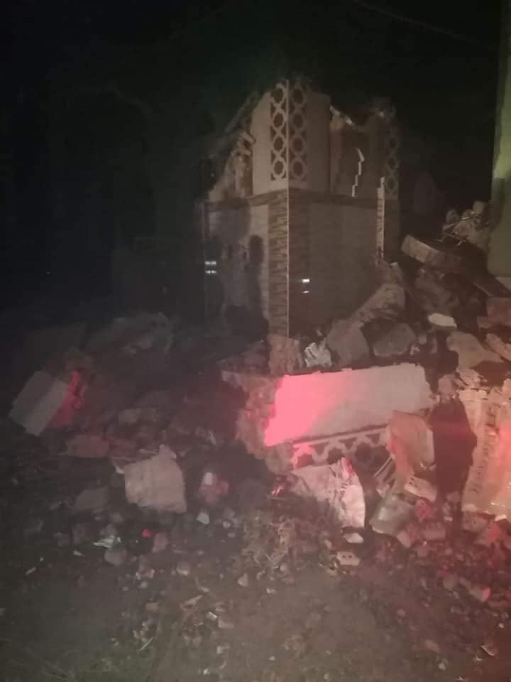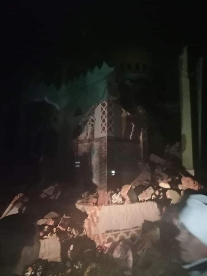 انهيار مئذنة مسجد وسور مدرسة