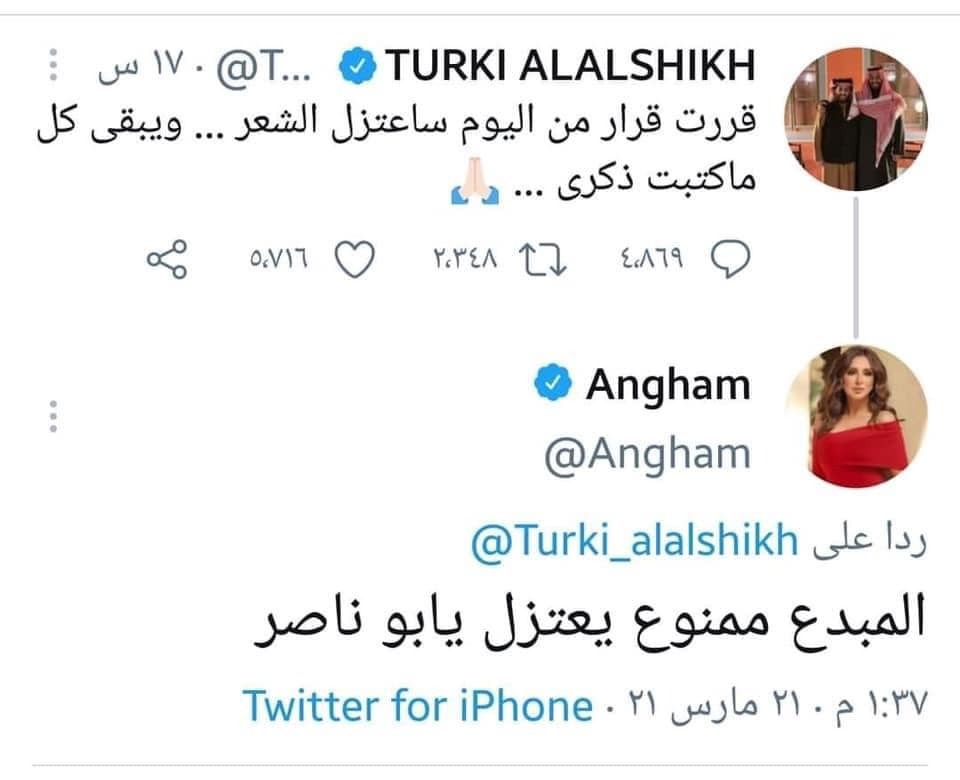بعد قرار اعتزاله الشعر.. أنغام لتركي آل الشيخ: "المبدع ممنوع يعتزل"