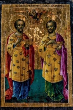 نشر متحف الغردقة على صفحته الرسمية على "فيس بوك"، أيقونة للقديسين "قزمان ودميان"، وذلك لأهميتها في الفن القبطي.