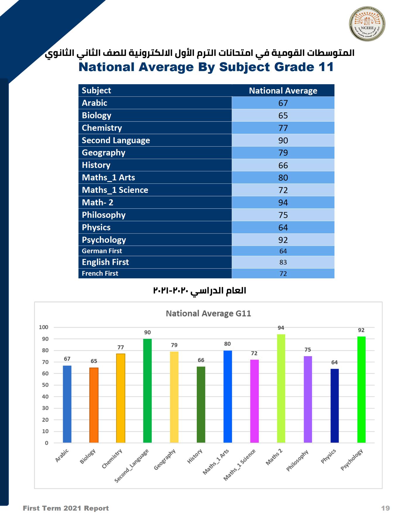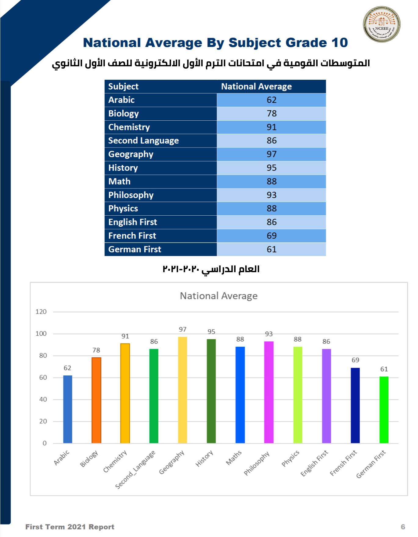 فيما جاءت المتوسطات القومية لطلاب الصف الثاني الثانوي، في الامتحانات الإلكترونية للفصل الدراسي الأول، كالتالي: