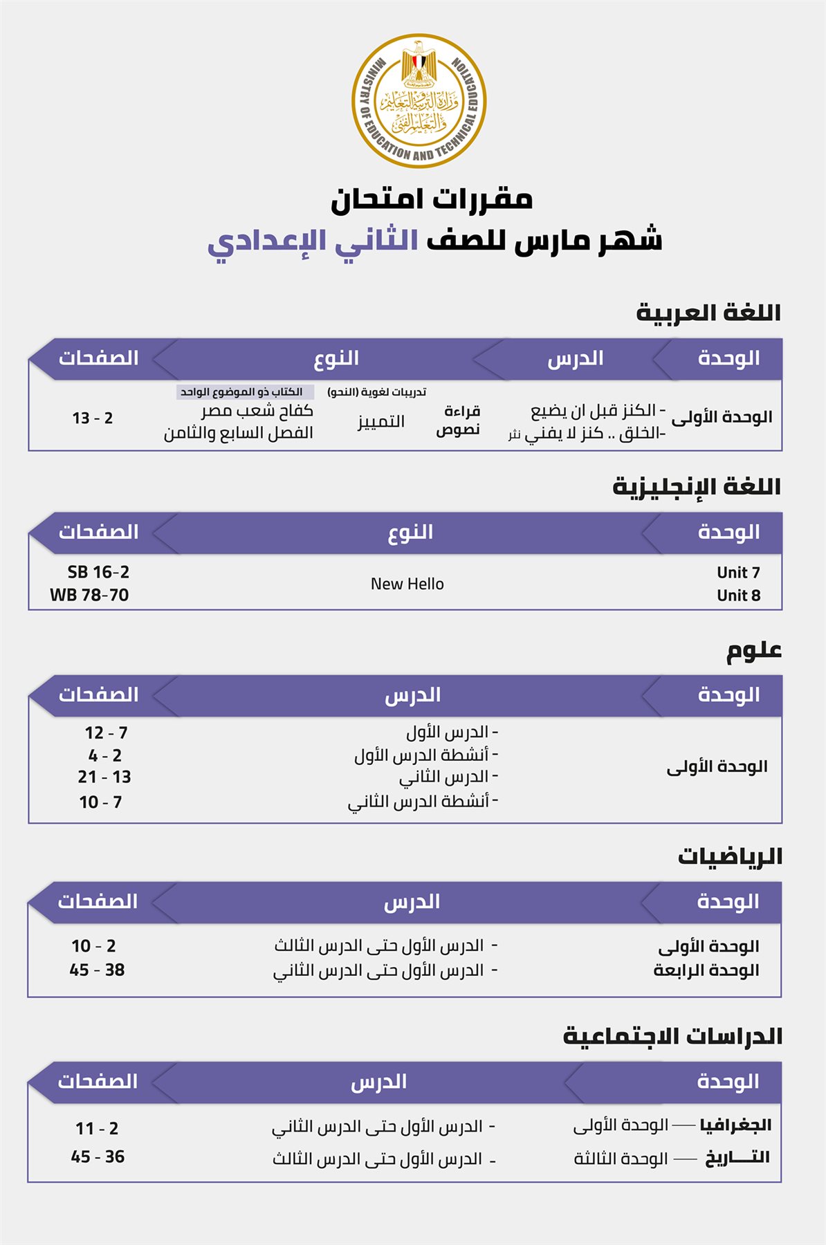 وكانت وزارة التعليم، قد أعلنت مناهج امتحانات شهر مارس، والتي جاءت كالتالي:
