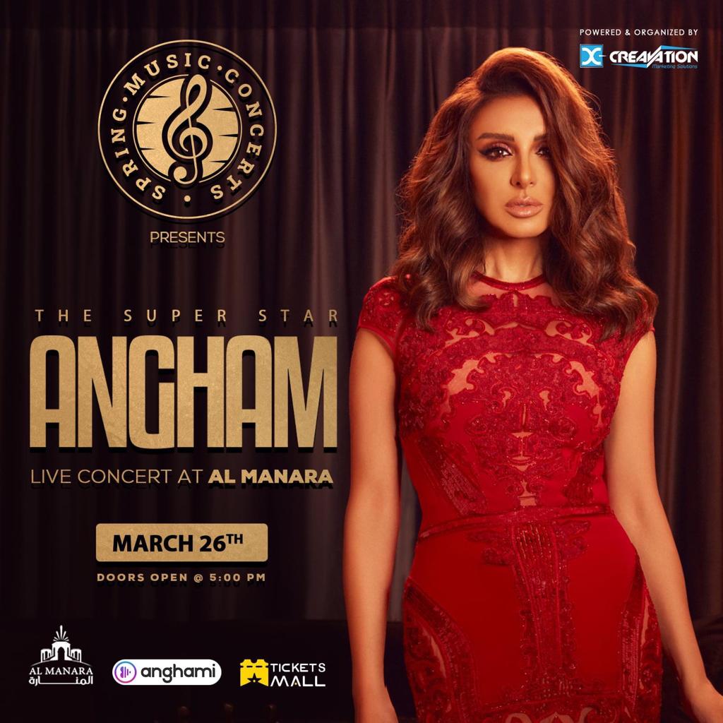 وتفتتح نجمة مصر الأولى أنغام أولى ليالي موسم حفلات الربيع مساء الجمعة القادمة يوم 26مارس الجاري.