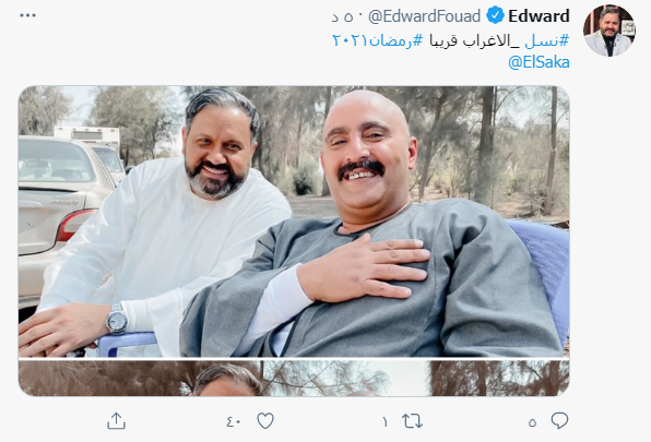 ونشر إدوارد الصورة، عبر صفحته الرسمية بموقع التغريدات القصيرة "تويتر"، مغردًا: "نسل الأغراب قريبًا رمضان 2021"، متمنيًا أن ينال المسلسل إعجاب جمهوره ومحبيه.