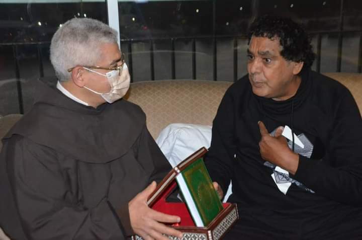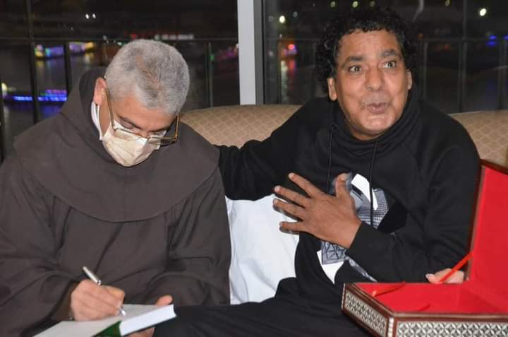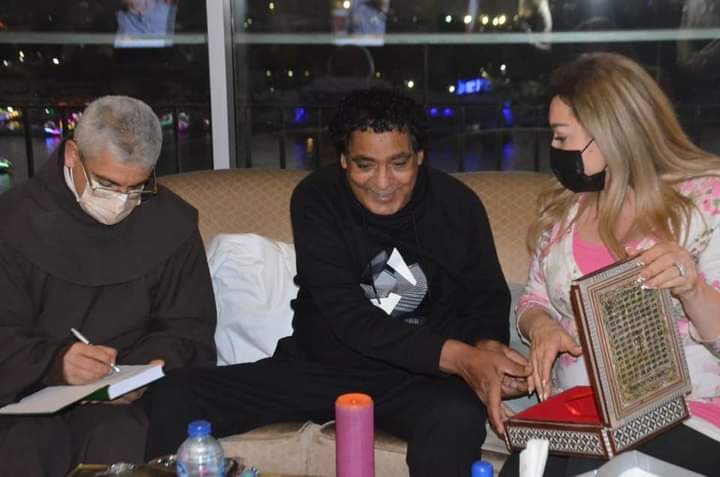 الأب بطرس دانيال يزور محمد منير ويهديه مصحفًا (صور)