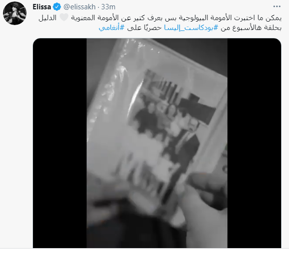 ونشرت إليسا الفيديو، عبر صفحتها الرسمية بموقع التغريدات القصيرة "تويتر"، مغردةً: "يمكن ما اختبرت الأمومة البيولوجية، بس بعرف كتير عن الأمومة المعنوية، الدليل بحلقة هالأسبوع من بودكاست إليسا حصريًا على أنغامي".