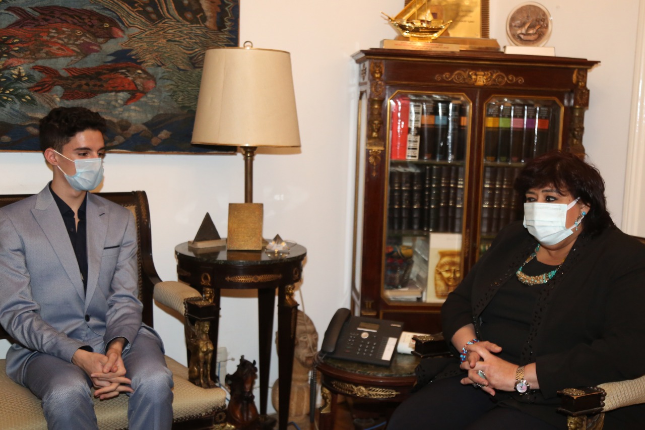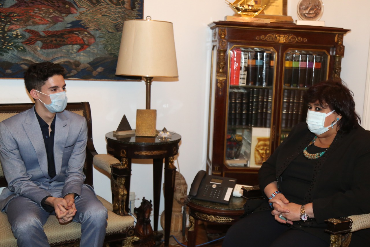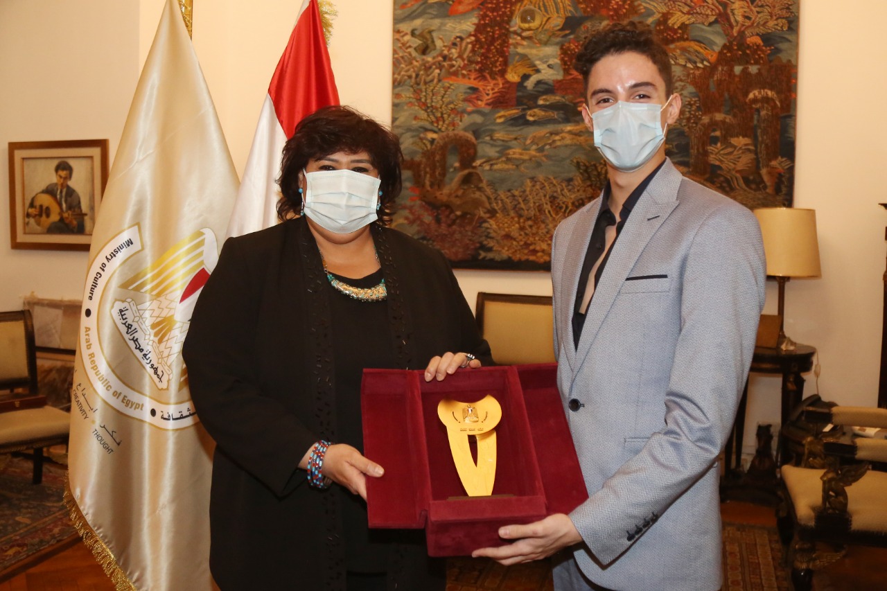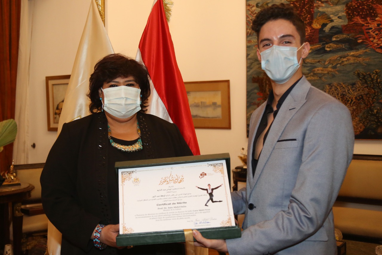 وزيرة الثقافة تكرم لوكا عبد النور أول مصري يشارك بمسابقة الباليه بسويسرا
