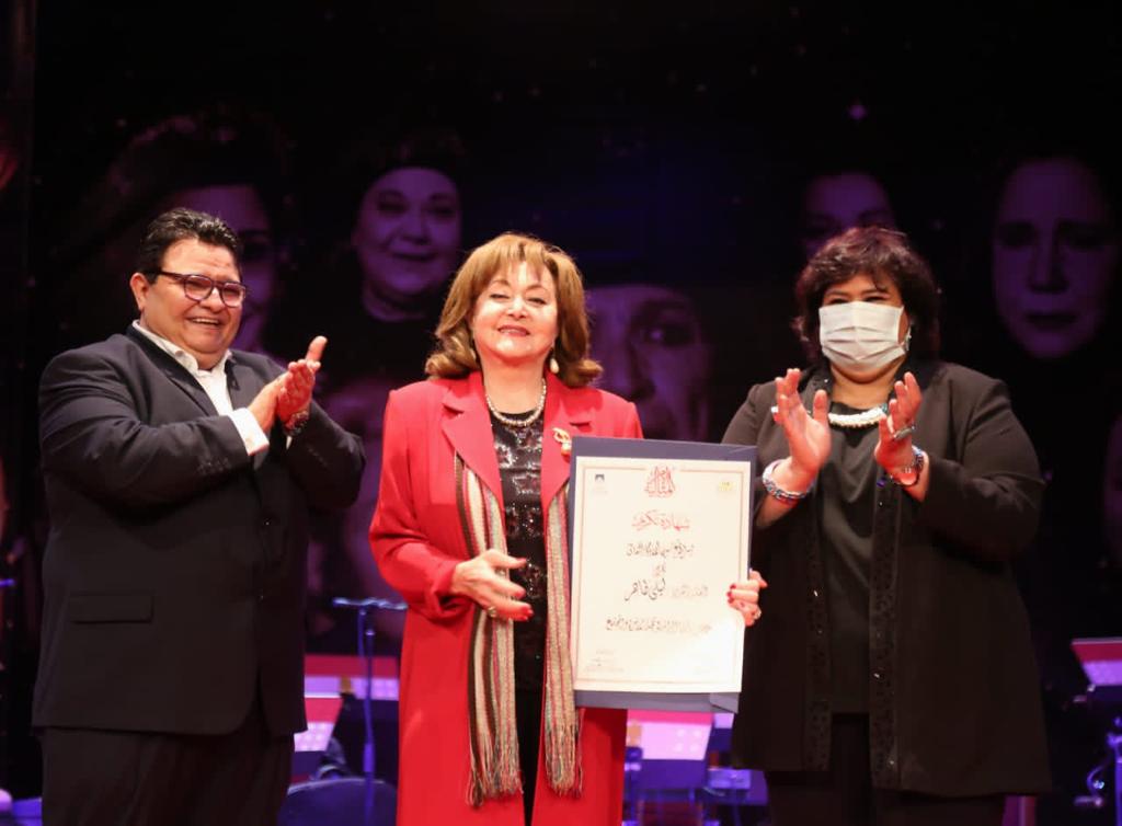 أهدت وزيرة الثقافة شهادات تقدير للفنانات القديرات سميحة أيوب، سميرة عبد العزيز، ليلى طاهر، رجاء حسين، الدكتورة سميرة محسن، مديحة حمدي، فردوس عبد الحميد، فتحية طنطاوي، الناقدة الكبيرة عبلة الرويني، السيدة سهير عبد القادر، الدكتورة عايدة عبد السلام إلى جانب 3 من العاملات، وهن آمال فؤاد عوض مدير إدارة السكرتارية، مديحة محمد رشاد بمكتبة القاهرة الكبرى، وعلا عبد الفتاح علي عبد الله بإدارة التراخيص الفنية.