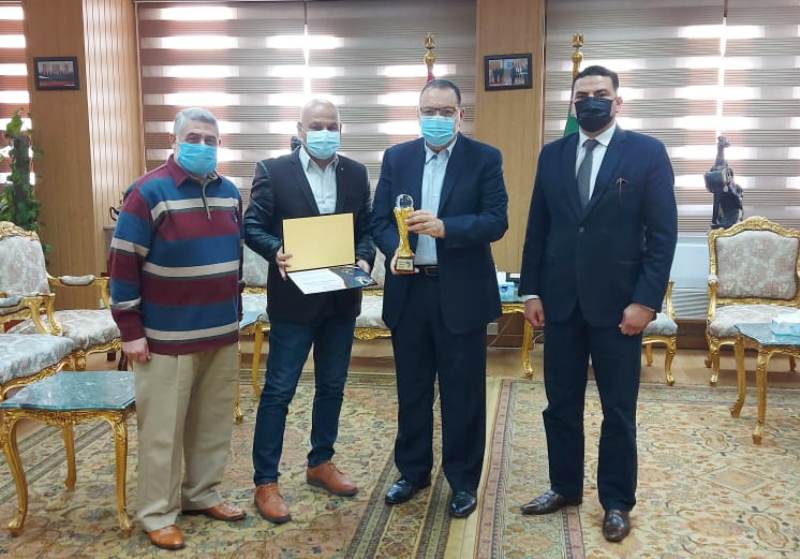 والتقى الدكتور ممدوح غراب، محافظ الشرقية، الدكتور محمود عبدالعظيم، وكيل وزارة الشباب والرياضة بالشرقية، ومحمود كامل، رئيس اللجنة المؤقتة لإدارة نادي الشرقية الرياضي، والكابتن محيى زغلول، المدير الفني لفريق نادي الشرقية للهوكي؛ لتهنئتهم بالجائزة.