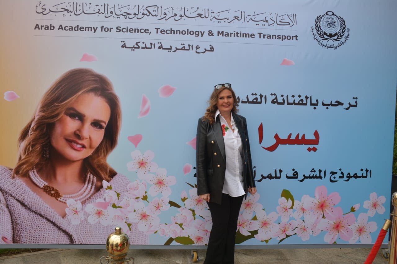 ونشرت يسرا مجموعة صور، عبر صفحتها الرسمية بموقع التغريدات القصيرة "تويتر"، مغردةً: "سعيدة جدًا بالحب الكبير اللي شوفته ولمسته إمبارح، من خلال زيارتي وتكريمي من طرف رئيس الأكاديمية العربية للعلوم والتكنولوجيا والنقل البحري، الدكتور إسماعيل عبد الغفار والدكتورة إيناس برسوم مستشار رئيس الأكاديمية لشئون الطلاب، نموذجًا مشرفًا للمرأة المصرية".