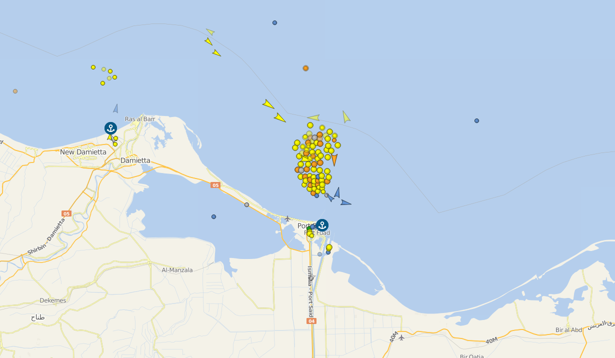 وترصد الصور شحوط السفينة بعرض ممر قناة السويس، وهو ما أدى إلى تعطل ما يقرب من 53 سفينة، بحسب ما رصدت منصة البيانات المتخصصة في تعقب حركة الملاحة البحرية العالمية، في الوقت الذي رصدت في الصور أيضًا عطول ما يقرب من عشرات السفن داخل ميناء بور سعيد وخرين في بور فؤاد.