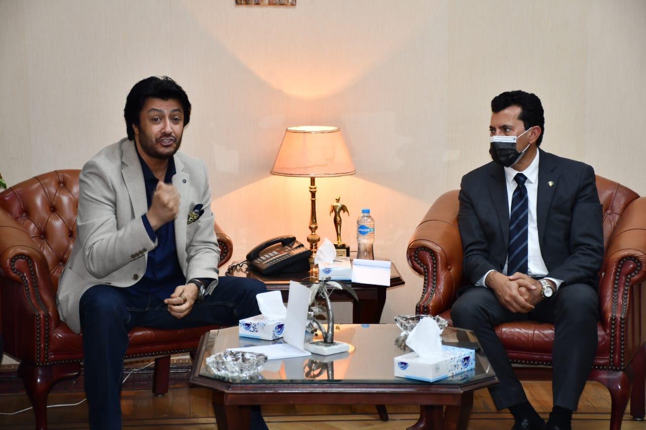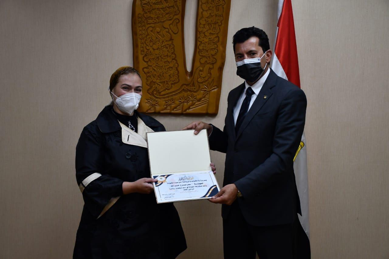 وزير الرياضة يُكرم بطل سباحة الغوص محمد كرم