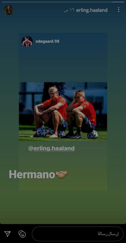 وكتب هالاند على صورته مع مارتن أوديجارد باللغة الإسبانية: “صديقي”.