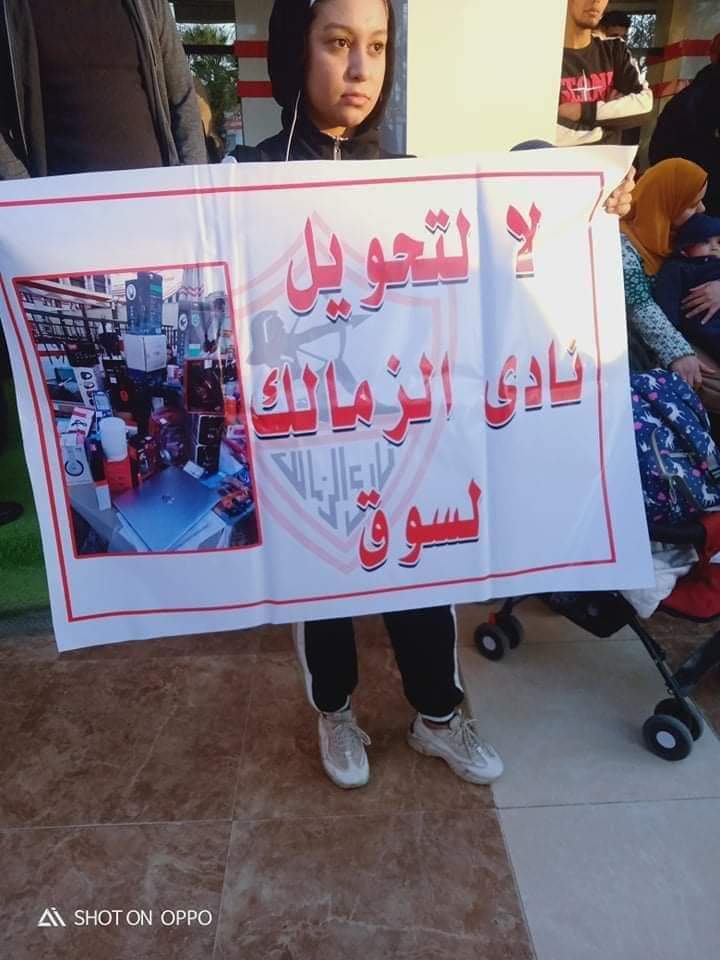 ورفع المشاركون لافتات كتب عليها "أنقذوا نادي الزمالك"، "لا لتحويل النادي إلى سوق"، "لا لزيادة الاشتراكات".
