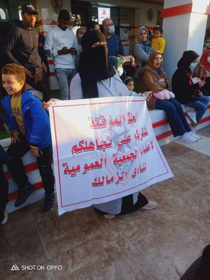 نظم العشرات من أعضاء الجمعية العمومية بنادي الزمالك، وقفة احتجاجية أمام مبنى الإدارة منذ قليل.
