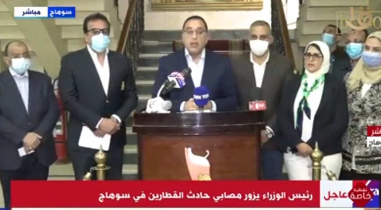 انتقل الدكتور مصطفى مدبولي، رئيس مجلس الوزراء، وبصحبته وزراء التعليم العالي والبحث العلميّ، والصحة والسكان، والتضامن الاجتماعي، إلى المستشفى الجامعي، للاطمئنان على حالة المصابين في حادث قطاري سوهاج، عقب زيارته للمصابين في المستشفى التعليمي بمحافظة سوهاج.