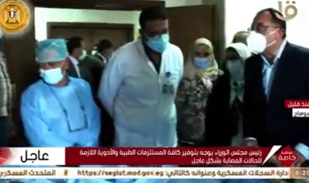 وتعرف رئيس الوزراء من أطباء المستشفى على الحالة الصحية للمصابين، موجها بتوفير أقصى رعاية صحية لهم، كما وجه بتوفير كافة المستلزمات الطبية والأدوية اللازمة للحالات المصابة بشكل عاجل.
