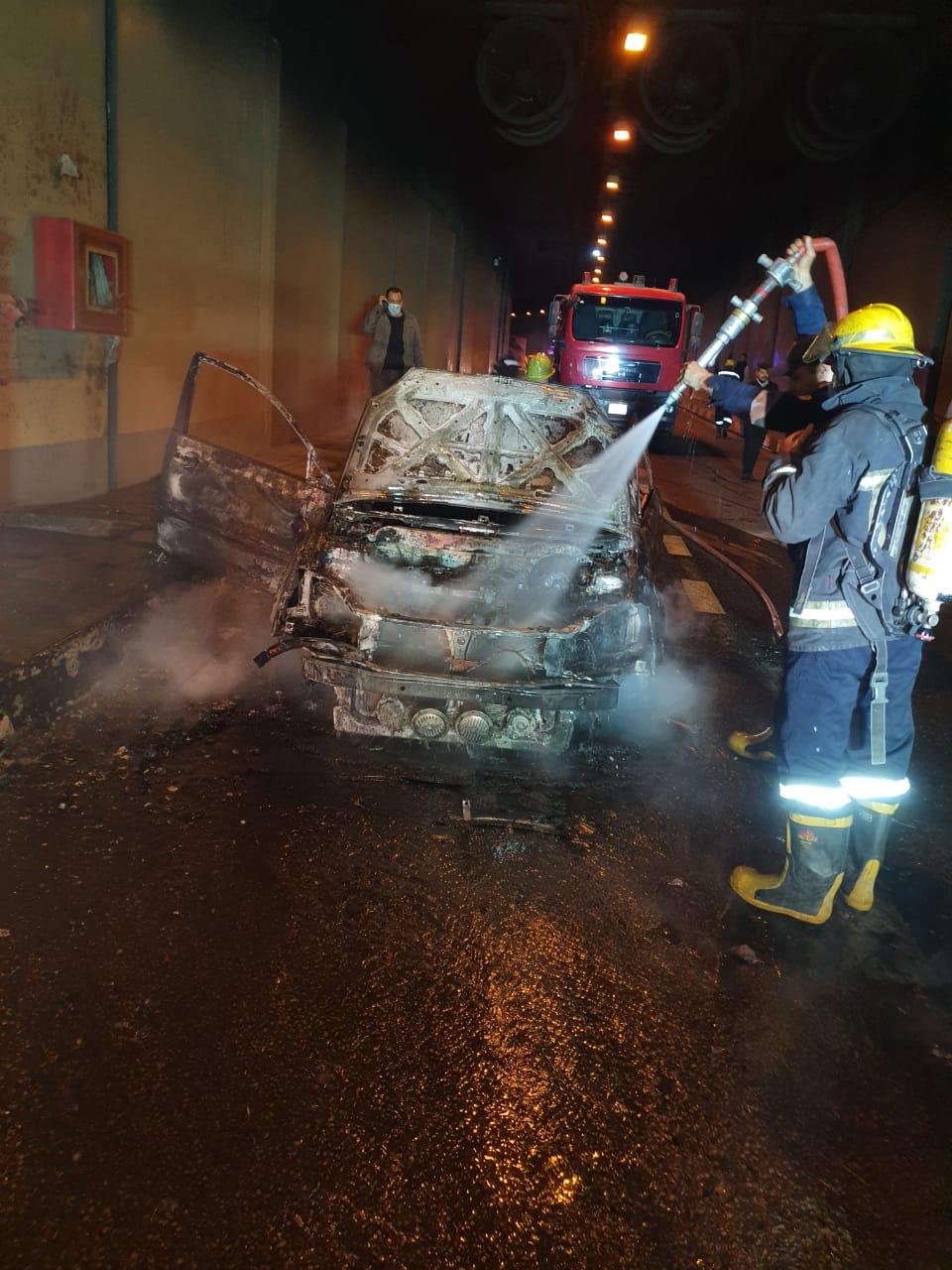ننشر صور السيارة المنفجرة داخل نفق الأزهر بعد إطفائها