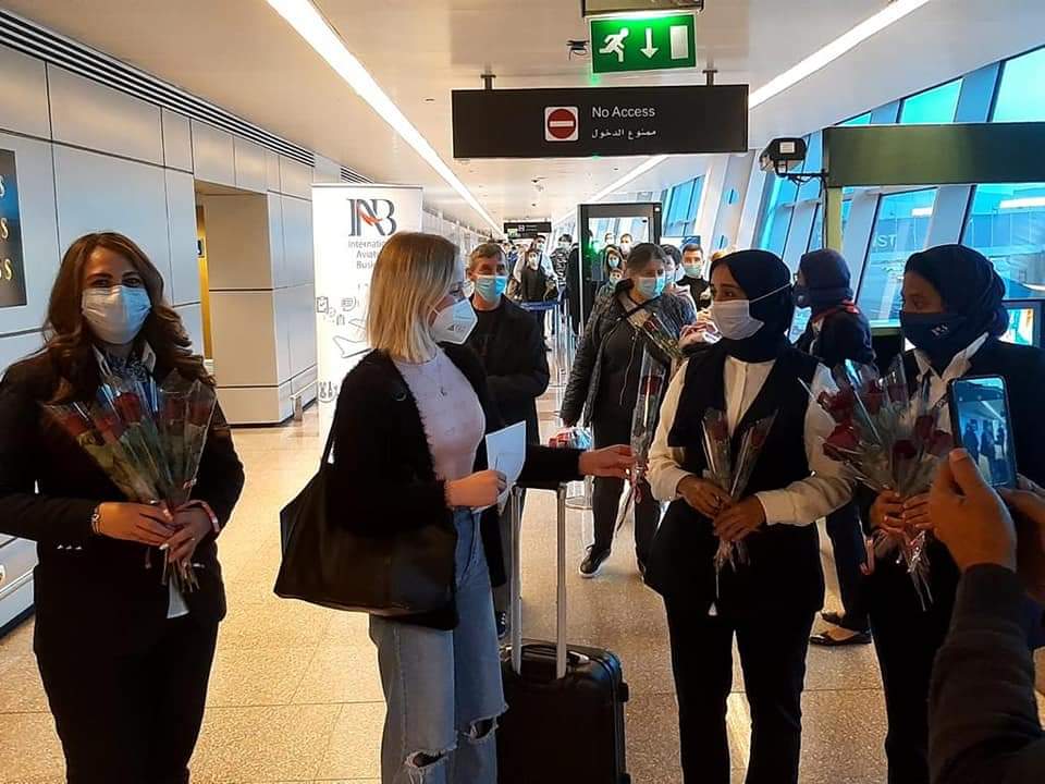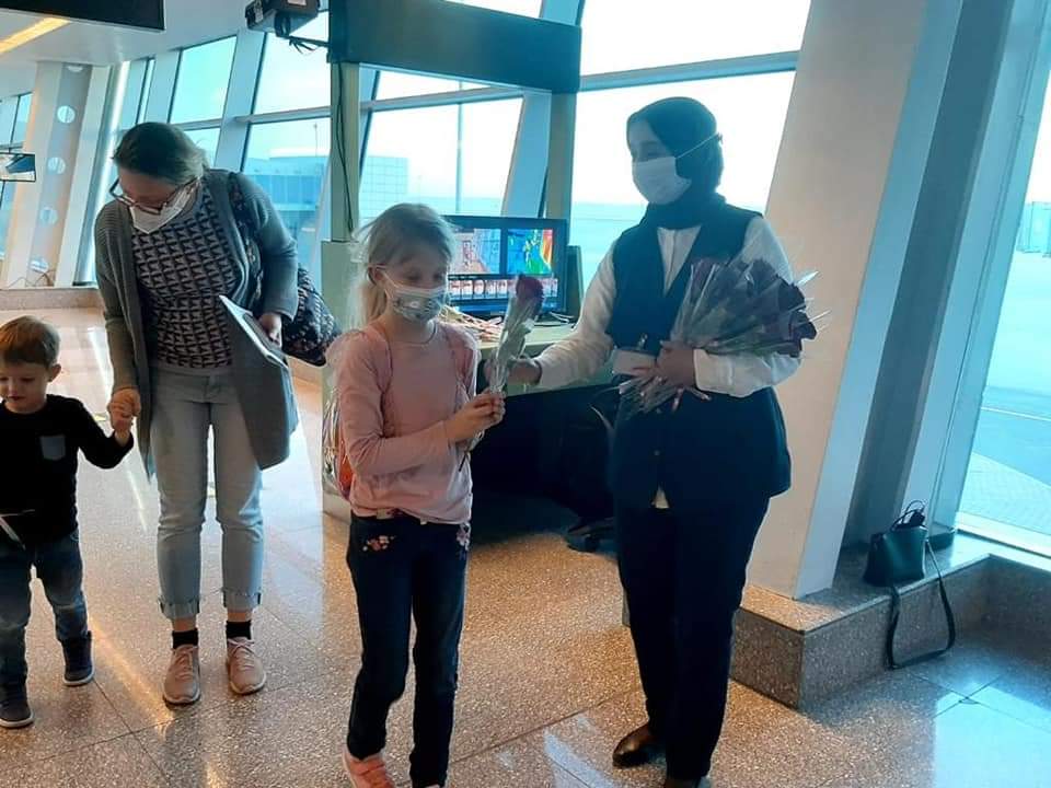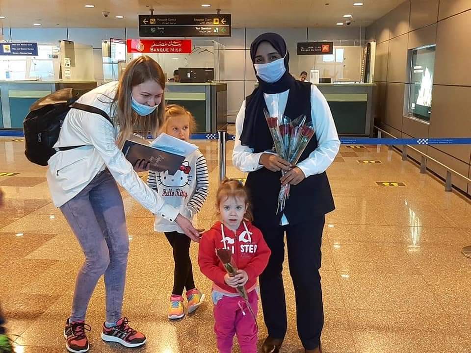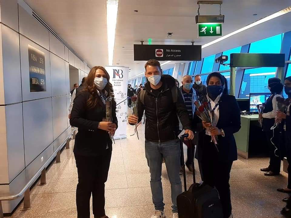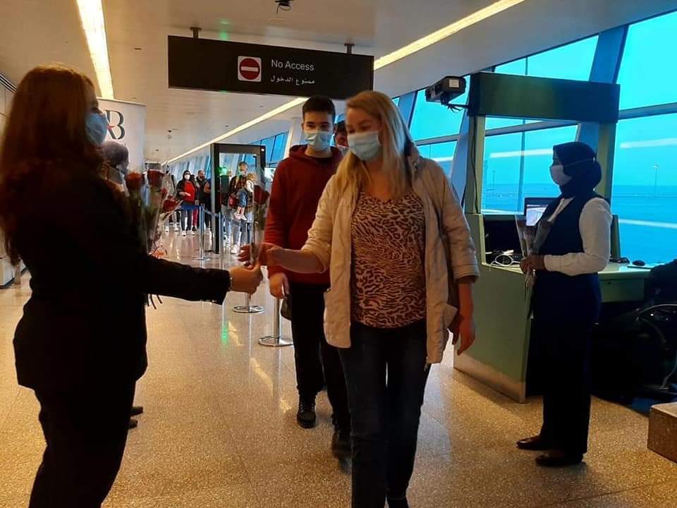 كما قام فريق العلاقات العامة بتقديم الورود والهدايا التذكارية للركاب وتوفير التسهيلات اللازمة مع تطبيق كافة الإجراءات الاحترازية والوقائية.