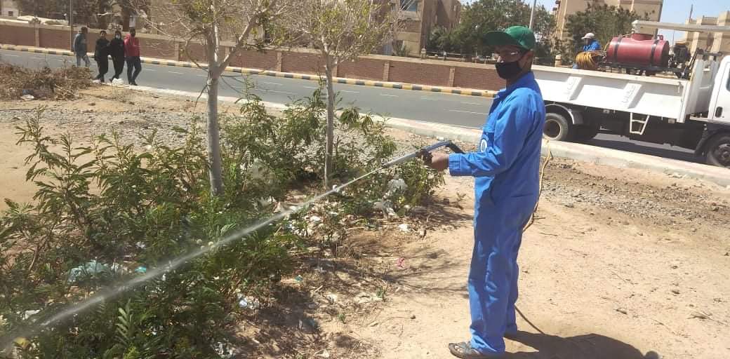 وتم اليوم أعمال الرش بالمبيدات بقطاعات المدينة لمكافحة على الحشرات الضارة والقوارض والثعابين بالمناطق "عمارات الـ608– عمارات ال 1008– عمارات الإسكان الاجتماعى– عمارات محمود رضا– عمارات ال 253 – عمارات ابو النصر القديمة" بجانب الظهير الصحراوى لتلك الناطق.