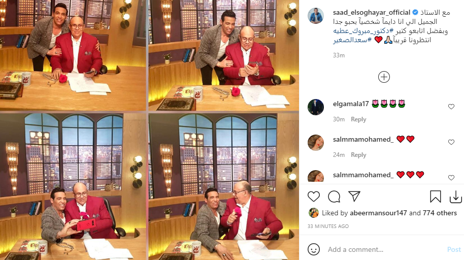 وعلق الصغير على الصورة التي نشرها قائلًا: “مع الأستاذ الجميل الي أنا دايمًا شخصيًا بحبه جدًا وبفضل أتابعه كثير.. دكتور مبروك عطية.. انتظرونا قريبآ”.