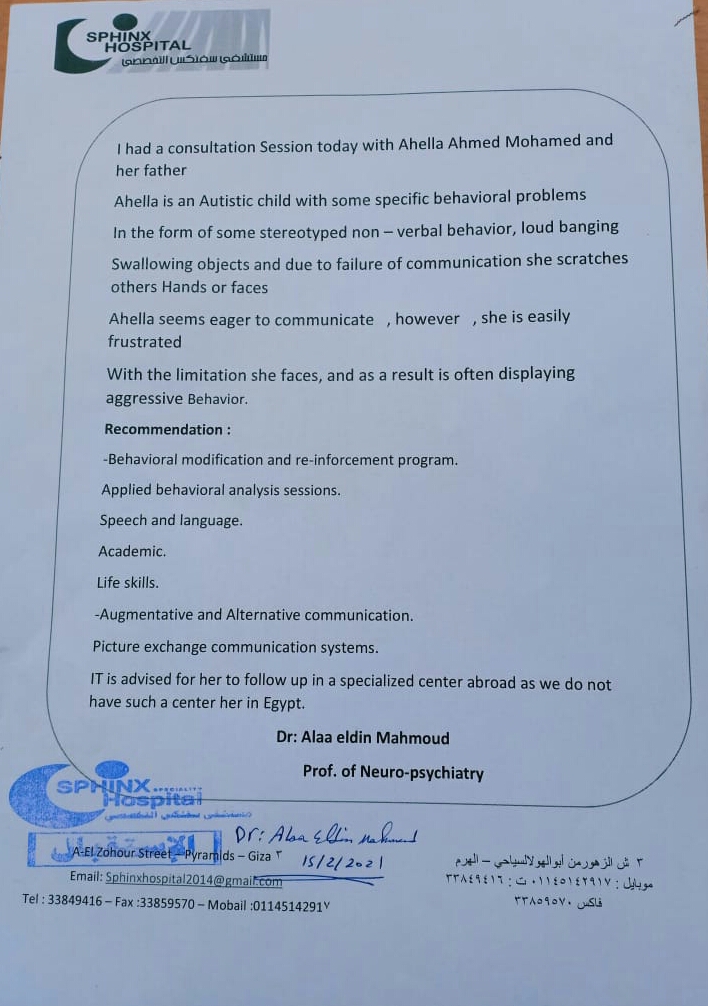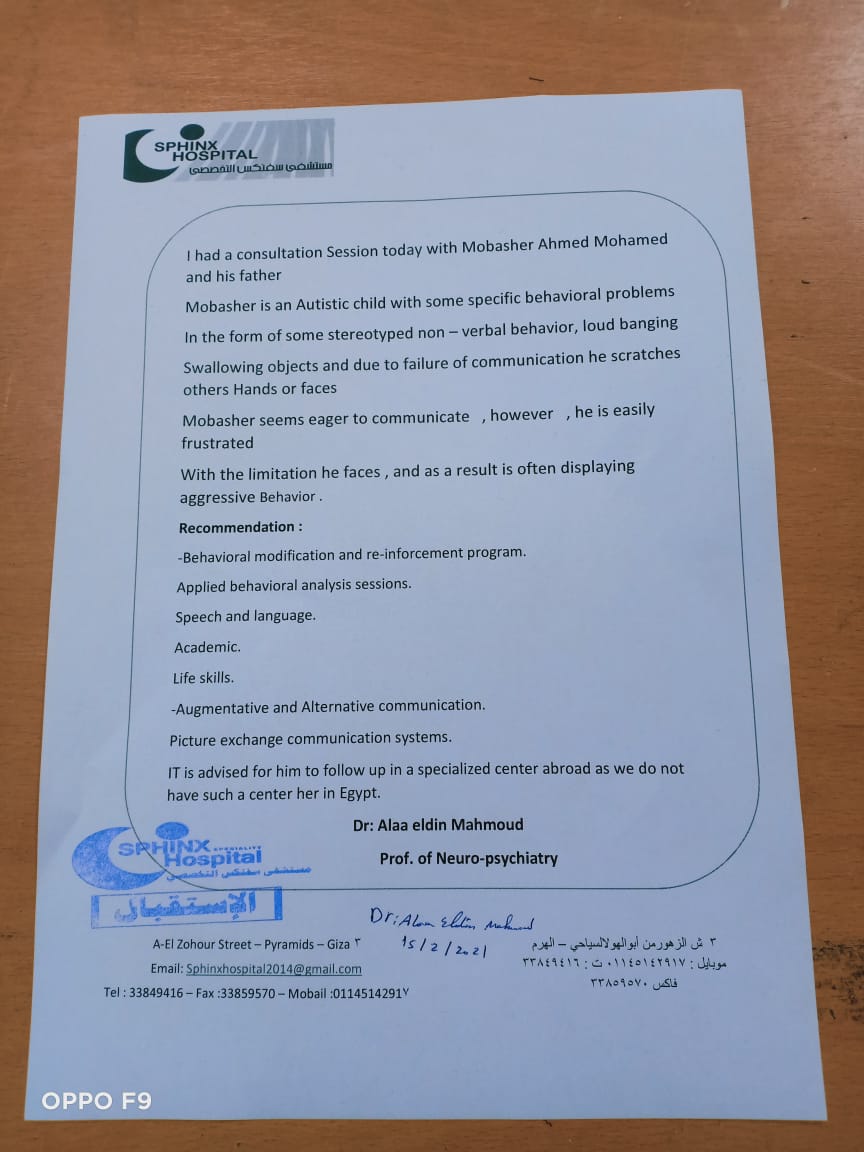 كما حال مرض الطفلين لقبولهما بأي من المدارس الحكومية، وبالتالي لا يوجد لهما تأمين صحي، مع أنهما يتناولان الأدوية المهدئة ليل نهار لمحاولة تهدئة أعصابهم، حسب تصريح والد الطفلين.