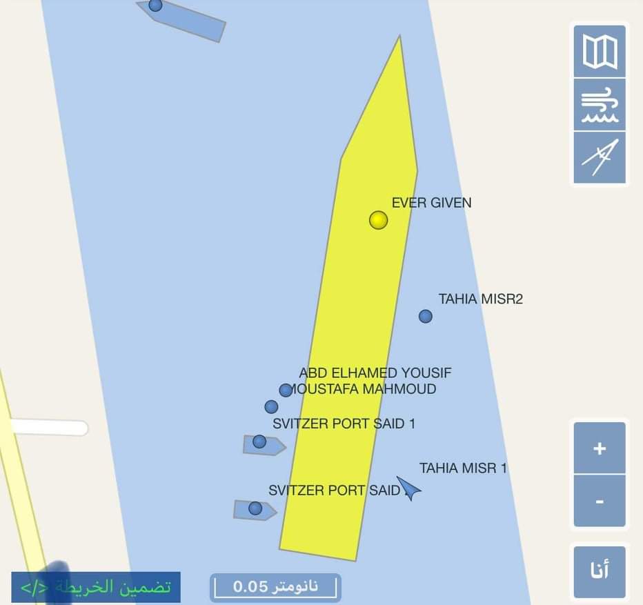 بدء تحرك السفينة الجانحة بقناة السويس بعد استجابتها لعمليات التعويم