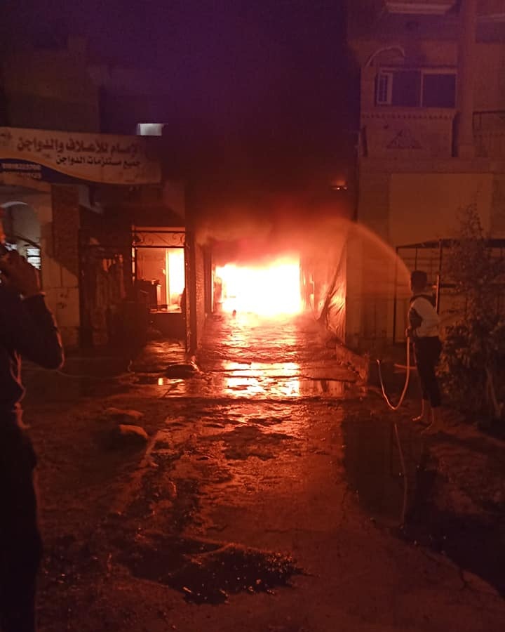 حريق في مغسلة سيارات أمام "سيتي كلوب" بالعاشر من رمضان (فيديو وصور)