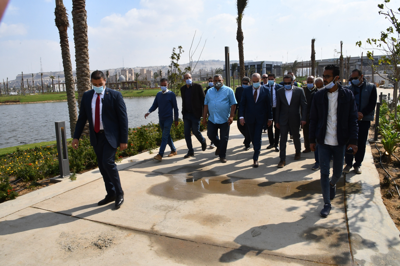 وتجول وزير الإسكان ومرافقوه، بالممشى المُنفذ حول البحيرة، ومكونات المشروع المختلفة، وبها “ممشى سياحى حول البحيرة بطول 2500 متر طولى، ومنطقة مطاعم، وجزيرة استوائية وسط البحيرة، ومسرح مكشوف، ومناطق خضراء، وبرجولات خشبية، و5 مجموعات نوافير عائمة داخل البحيرة، ومحطة معالجة لمياه البحيرة”.