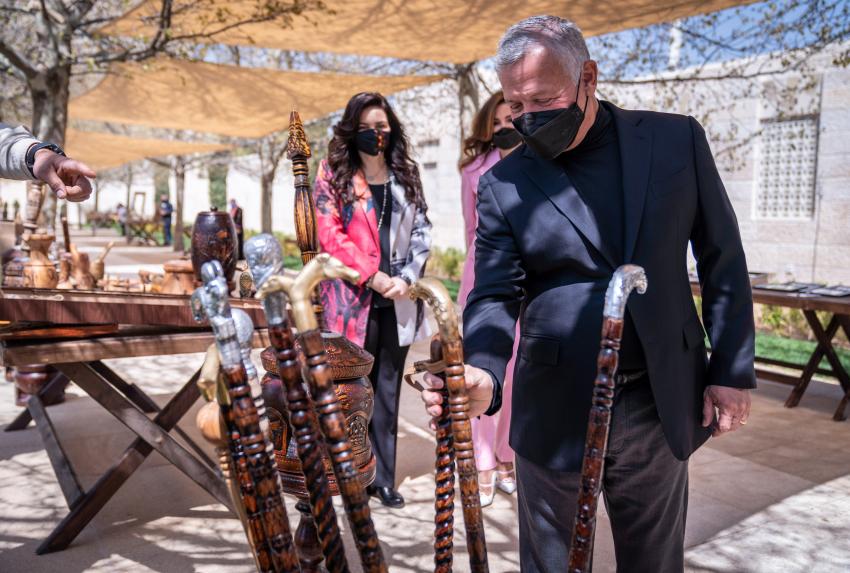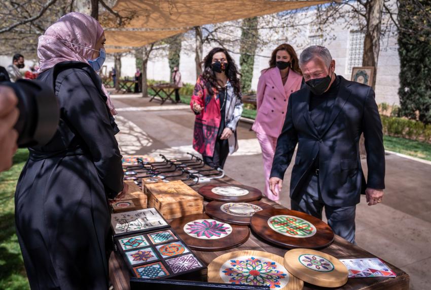العاهل الأردني وقرينته يتفقدان منتجات الشباب أصحاب المشاريع الحرفية