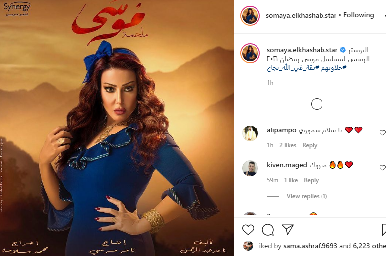 طرحت الفنانة سمية الخشاب البوستر الرسمي الخاص بها في مسلسل "موسى"، بطولة الفنان محمد رمضان، والمقرر عرضه في السباق الرمضاني المقبل 2021 عبر شاشة قنوات "dmc".