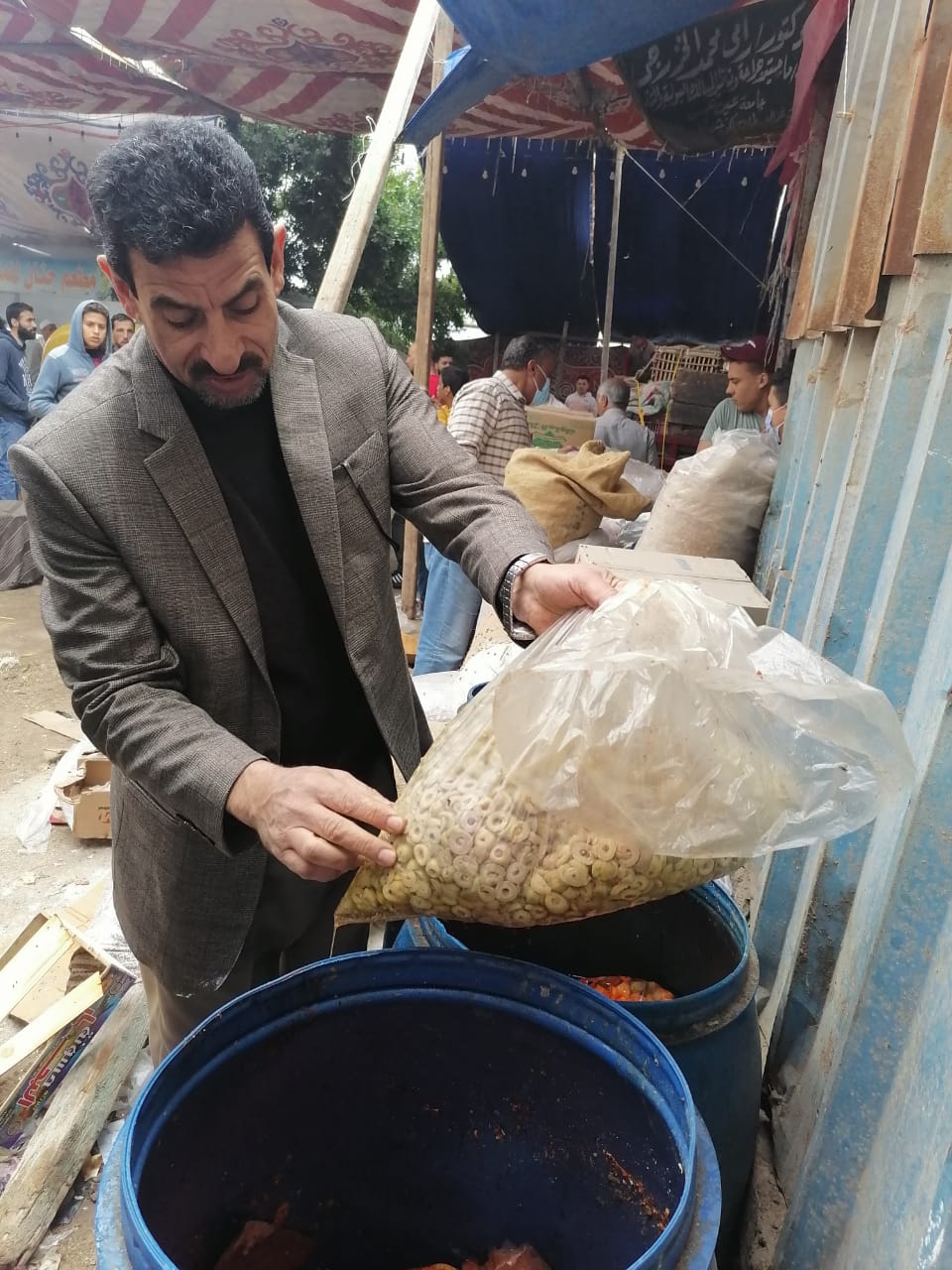 أسفرت الحملة عن ضبط مصنع مخللات غير حاصل علي ترخيص مزاولة نشاط صناعي، والتحفظ علي 100 طن مخلل متنوع ظاهر عليه علامات التلف والعفونة، عبارة عن 1000 برميل زنة البرميل 100 كيلو، 850 كيلو ملح دون أي تاريخ إنتاج أو صلاحية، 20 طن مخلل لفت متغير الصفات الطبيعية وتظهر عليه علامات العفونه، وضبط مخزن مواد غذائيه غير مرخص والتحفظ على 150 كرتونة حلوى سوداني زنة الواحدة 2 كيلو بإجمالي 300 كيلو مجهولة المصدر.
