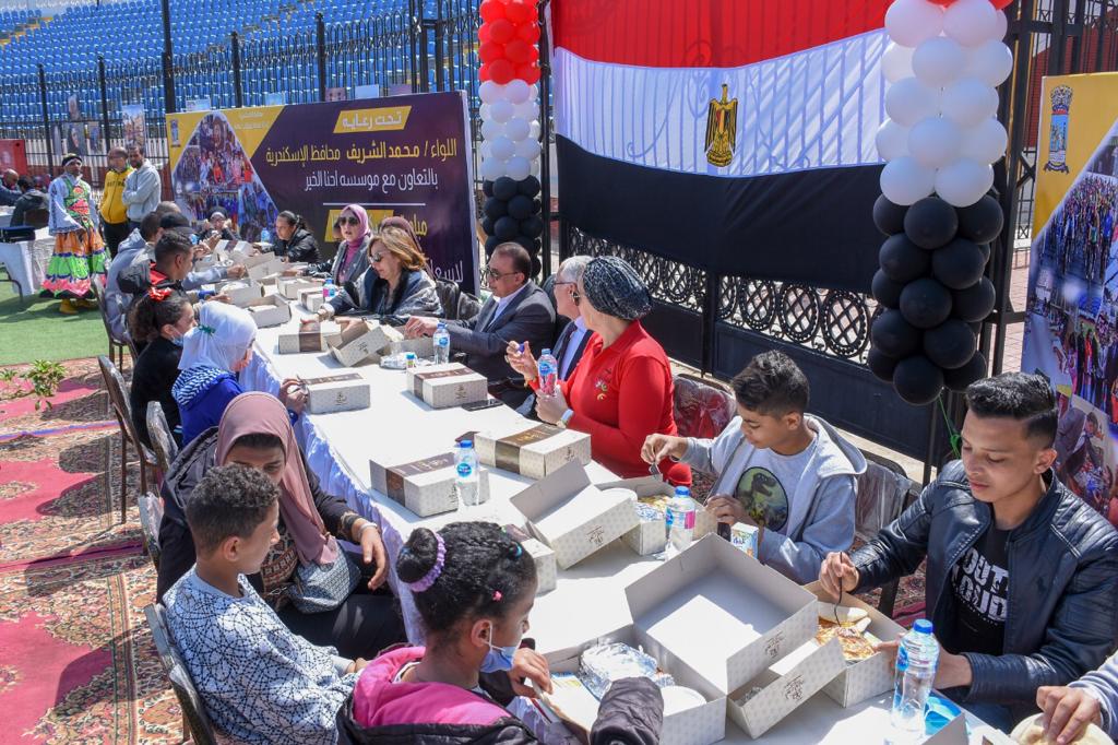 شهد اللواء محمد الشريف محافظ الإسكندرية اليوم مبادرة " اسكندرية بيتك" المقامة باستاد الإسكندرية بالتعاون مع مؤسسة" احنا الخير" لتكريم 250 يتيم ، وذلك لتكريم العديد من الأطفال الأيتام وإدخال البهجة والسعادة عليهم.
