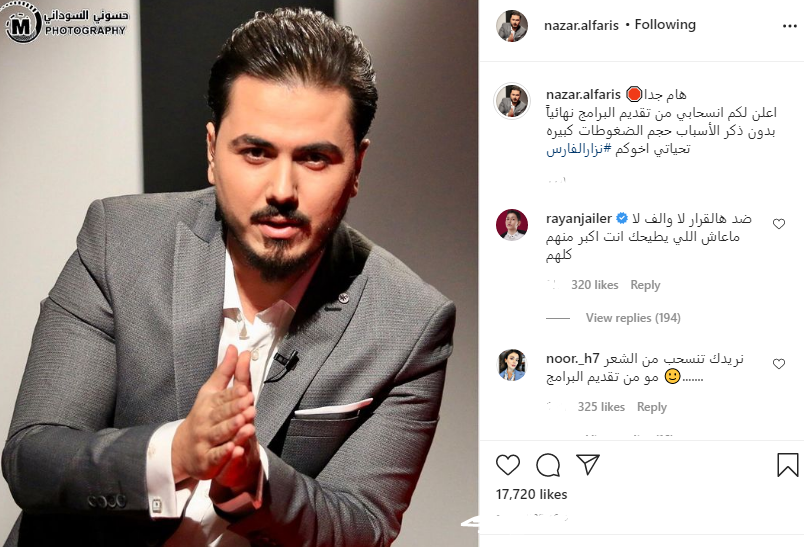 نزار الفارس يعلن انسحابه من تقديم البرامج نهائيًا بعد تلقيه تهديدات بالقتل