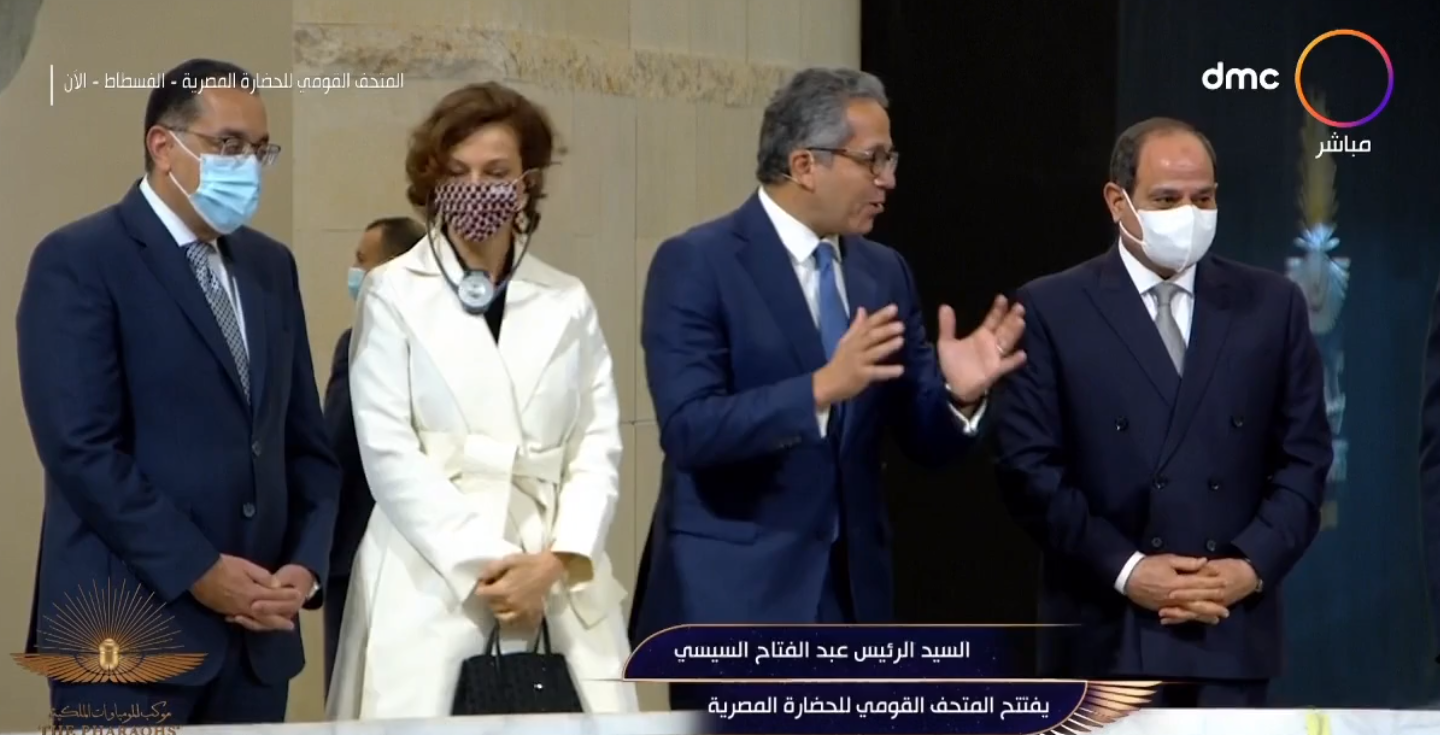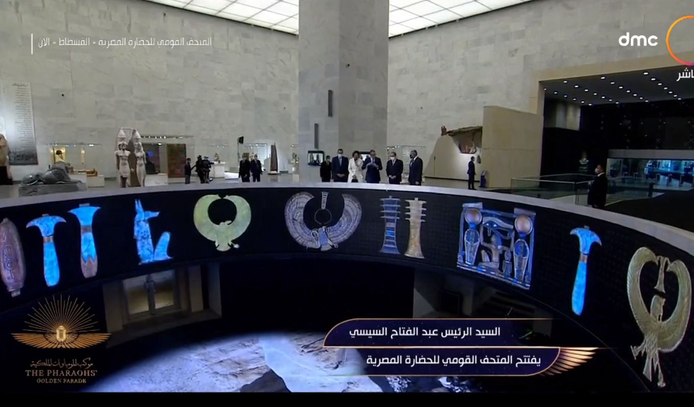تفقد الرئيس عبد الفتاح السيسي، منذ قليل، صالة العرض المركزية، للمتحف القومي للحضارة بالفسطاط، وذلك قبل وصول موكب المومياوات الملكية.