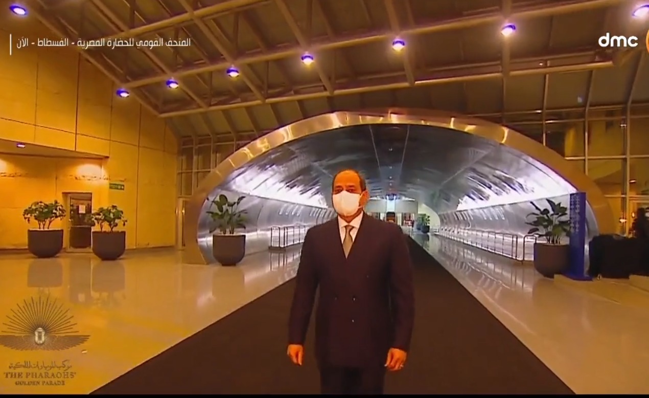 فيما أجرى الرئيس عبد الفتاح السيسي، جولة تفقدية منذ قليل، بالمتحف القومي للحضارة المصرية، قبل افتتاحه باستقبال موكب المومياوات الملكية، والذي سيتحرك من المتحف المصري في التحرير إلى المتحف القومي في الفسطاط.