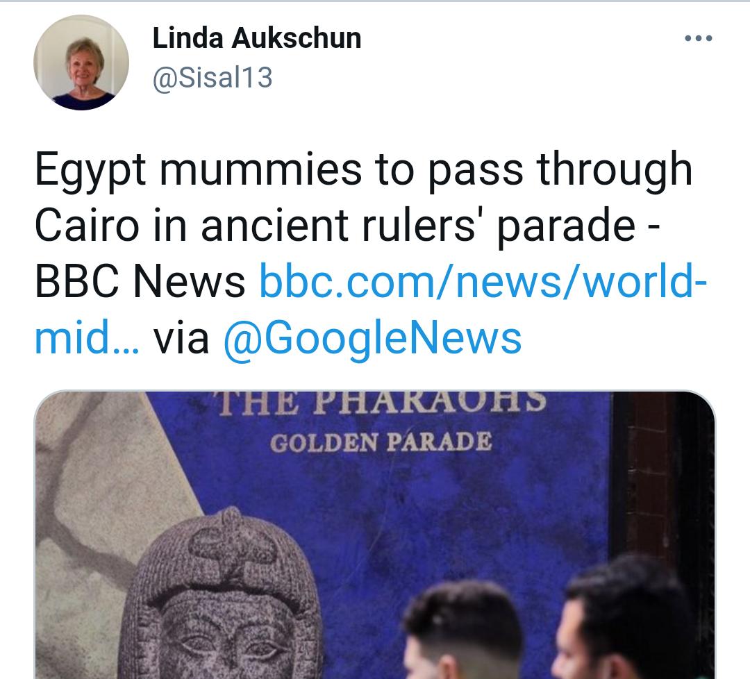 وقالت "لندا": مومياوات مصرية تمر عبر القاهرة في موكب الحكام القدماء".