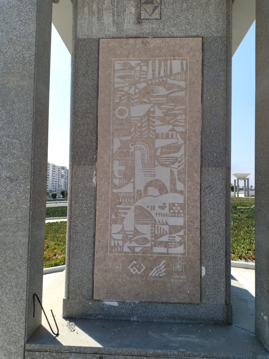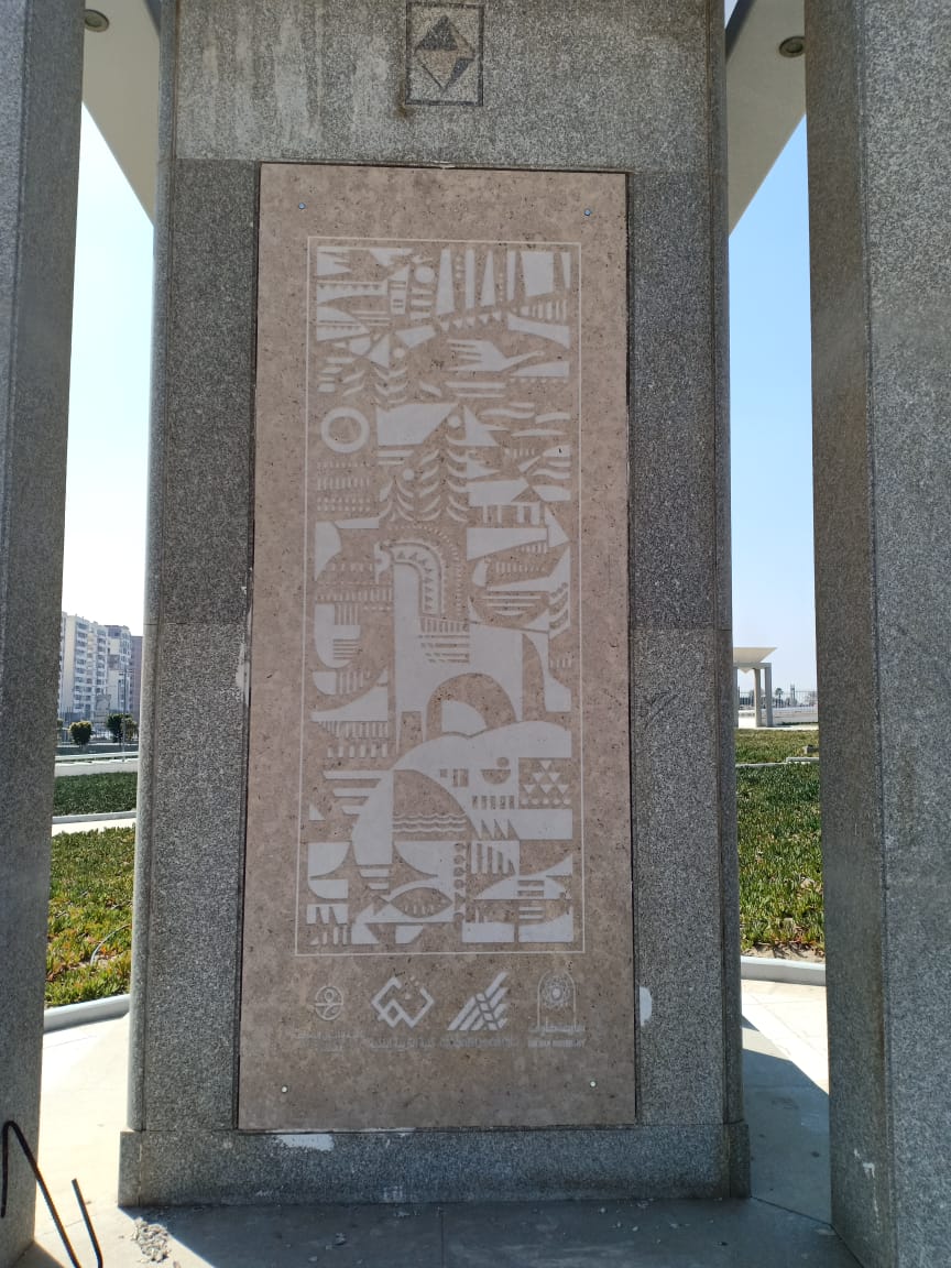 وقالت مروة: "رسمت التصميم مرة بالأبيض والأسود باستخدام القلم الرصاص، ومرة أخرى بألوان جواش، وفي بعض الأجزاء الدقيقة في التصميم استعنت بأقلام التحبير"، موضحة أن التصميم تم تنفيذه على الرخام بحفر بالليزر.