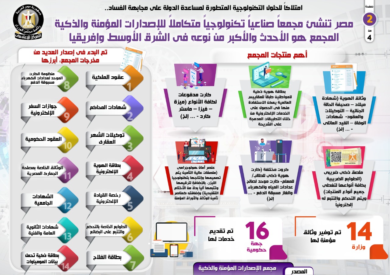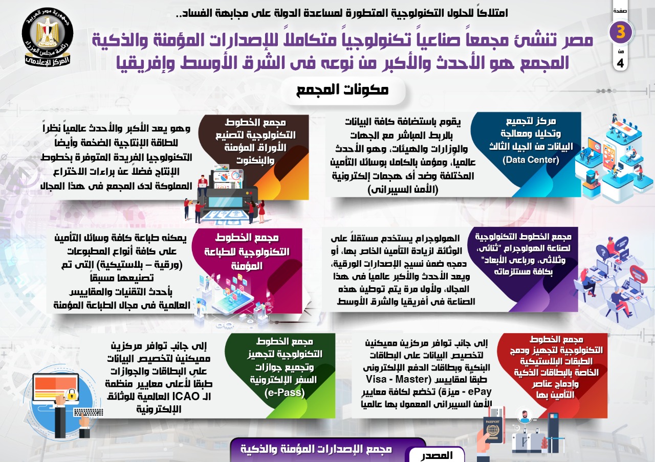 إنفوجراف.. مصر تنشئ مجمعًا صناعيًا تكنولوجيًا متكاملًا للإصدارات المؤمنة والذكية