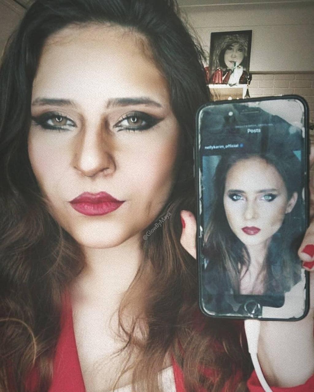 حولت شكلها إلى نيللي والسندريلا.. مايا ثابت فنانة تستخدم المكياج للحصول على ملامح المشاهير (صور)