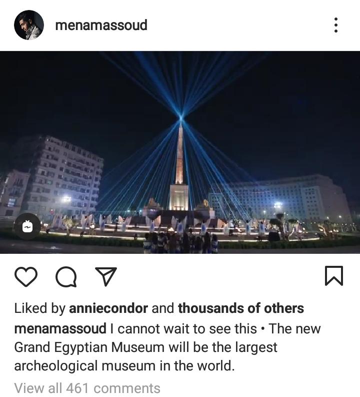 وفي تدوينة له عبر حسابه الشخصي على موقع انستجرام، أعرب مسعود عن انبهاره بما شاهده من احتفال عظيم لموكب نقل المومياوات الملكية في مصر، وقال: "بعد كل هذه العظمة لا أستطيع الانتظار كثيرًا لرؤية فاعليات افتتاح المتحف المصري الكبير الذي يعد هو أيضا التزاما مصريا خالصا بالحفاظ على ثقافة وتاريخ هذا الشعب العريق. فالمتحف الكبير أيضًا يؤكد أن مصر هي أعظم البلاد في أفريقيا والعالم".