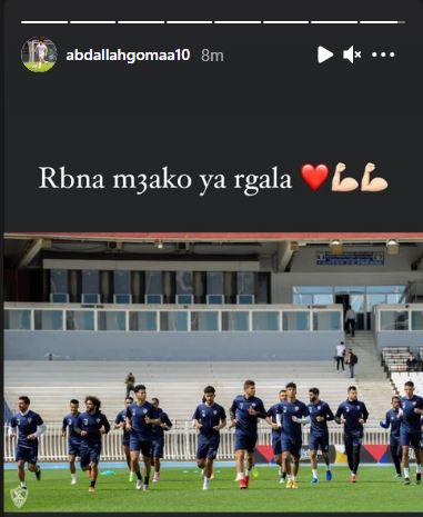 ونشر عبد الله جمعة عبر خاصية "استوري" على حسابه انستجرام:" صورة لمران للاعبي الزمالك وعلق عليها بالقول "ربنا معاكم يا رجالة".