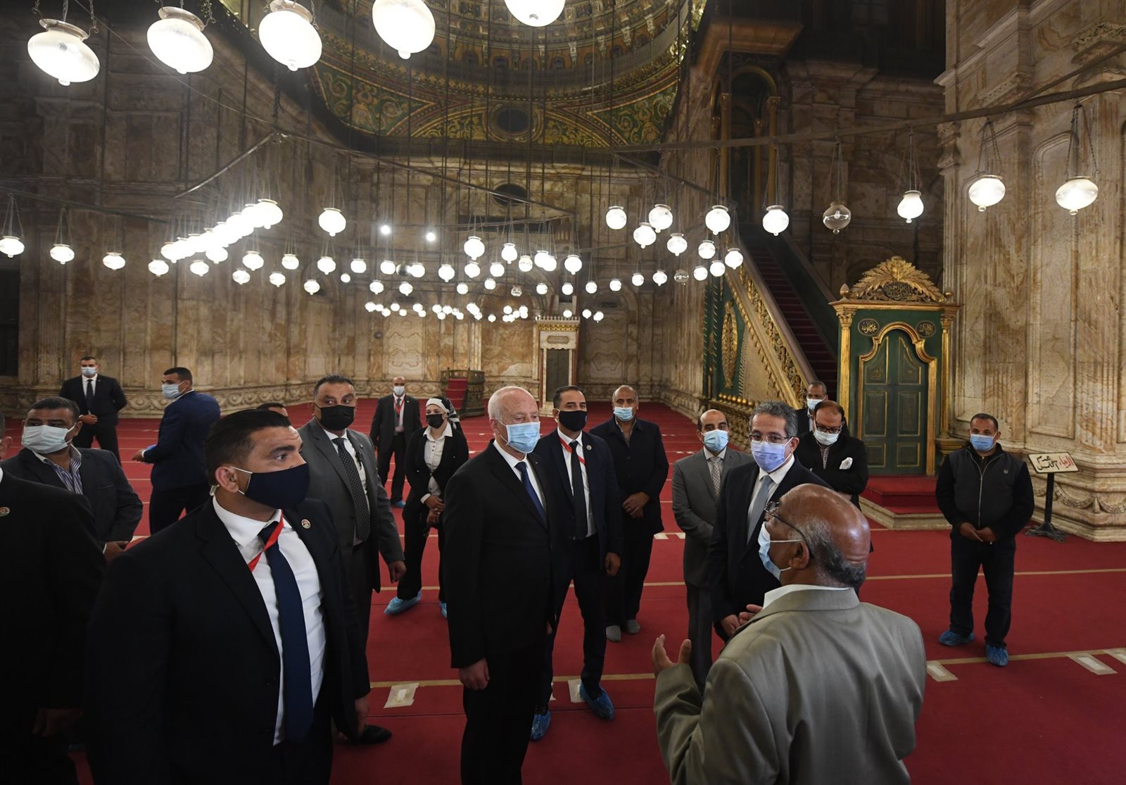 وشملت الزيارة جولة سياحية داخل مسجد عمرو بن العاص وقلعة صلاح الدين الأيوبي وذلك بمنطقة مصر القديمة، وذلك عقب استقبل الرئيس عبد الفتاح السيسي بعد ظهر اليوم بمطار القاهرة اخيه الرئيس التونسي قيس سعيد الذي يحل ضيفاً عزيزًا على مصر في زيارة رسمية لمدة ثلاثة ايام".