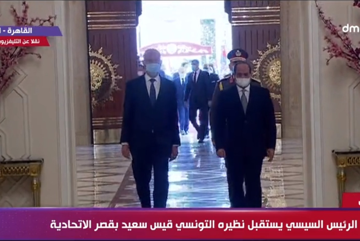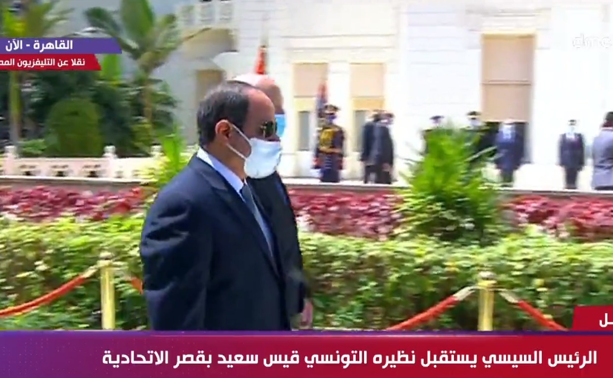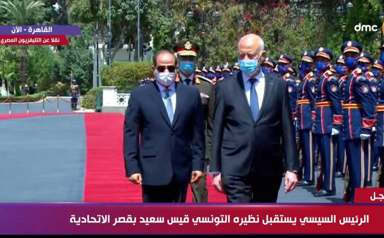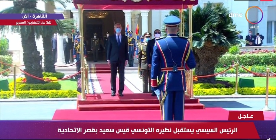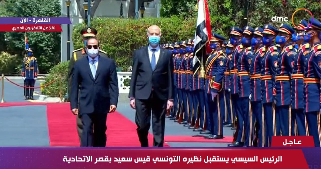 استقبل الرئيس عبد الفتاح السيسي، صباح اليوم السبت، الرئيس قيس سعيد رئيس الجمهورية التونسية داخل القصر الجمهوري بالاتحادية الذي يحل ضيفاً عزيزاً علي مصر في زيارة رسمية لمدة ثلاثة ايام".