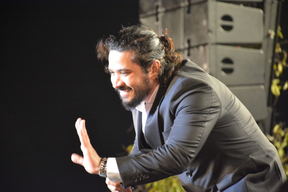وافتتح تامر حسني الحفل بأغنية "عيش بشوقك " وسط عاصفة من هتافات وصرخات الإعجاب بعدها وجه التحية للجمهور لحفاوة الاستقبال وانتظاره وسط أجواء الهواء الطلق والبرودة الشديدة .