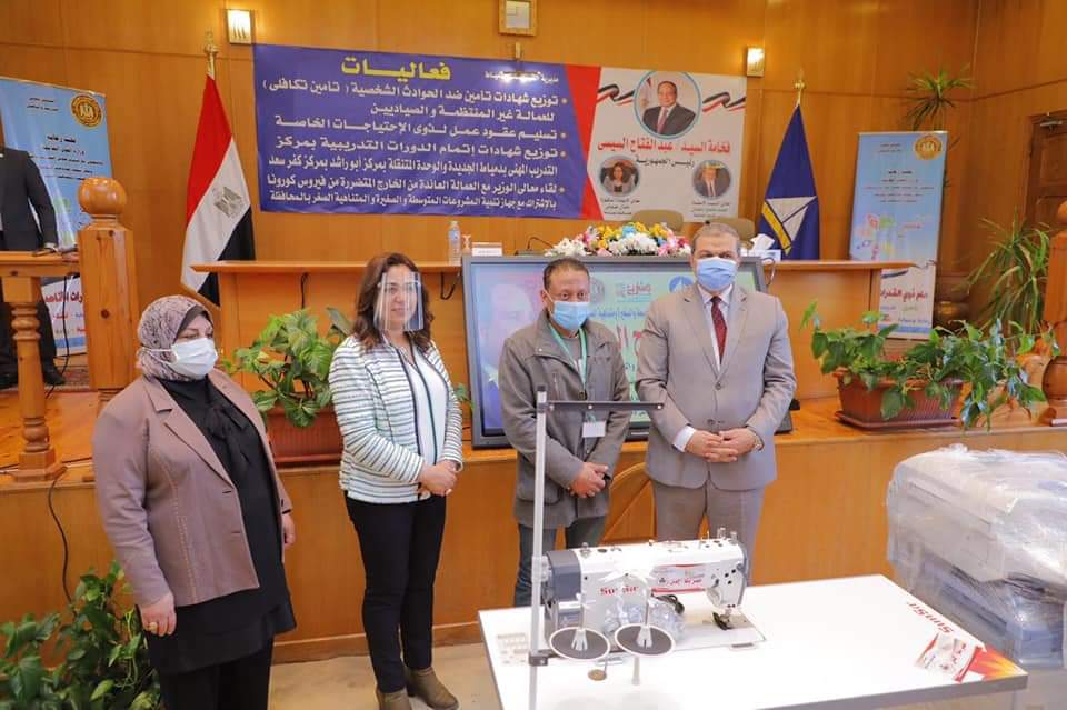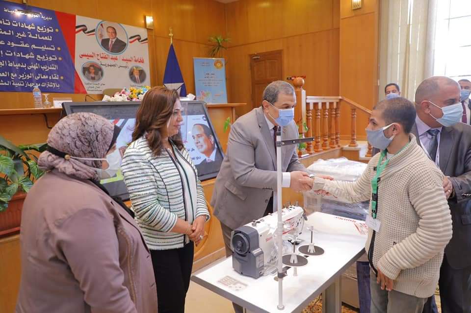 كما شهد اللقاء، قيام محافظ دمياط و وزير القوى العاملة بالإعلان عن تسليم عدد 20 فرصة عمل لذوى الهمم من متحدى الإعاقة للمتدريبن بالبرنامج الأول لمبادرة "مصر بكم أجمل" ، فضلاً عن تسليم عدد 13 ماكينة خياطة وتصوير وتغليف و ماكينة مفاتيح للمتدريبن من ذوى الهمم بتلك المبادرة وذلك بقطاع ريادة الأعمال، كما قاما بتسليم 50 شهادات إتمام التدريب للمتخرجين من الدورات التى نفذتها مديرية القوى العاملة بمجالى الخياطة والكهرباء بقرية أبو راشد بمركز كفر سعد من خلال وحدة التدريب المتنقلة.