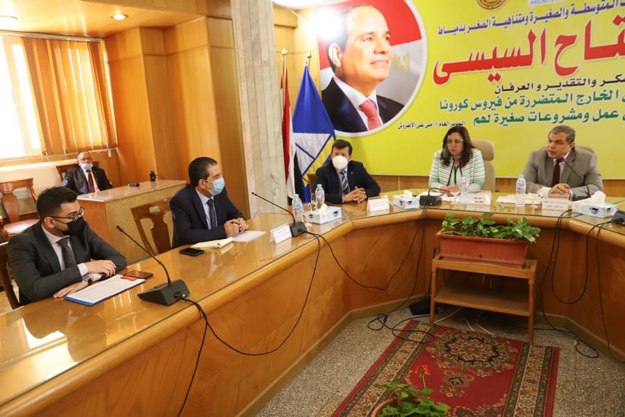 وأوضح الوزير أننا نحتاج النجاح لتلك المشروعات التي سيتم البدء فيها، موجها مديرية القوي العاملة بالمحافظة بضرورة إعداد قواعد بيانات كاملة للعائدين من الخارج الذين قاموا بعمل مشروعات صغيرة خاصة بهم، وايضا توفير العمالة الماهرة لأصحاب المشروعات في تعاون مع المحافظة والجهات المعنية، فضلا عن البدء في الدورات التدريبية بالتعاون مع الجهاز فوراً، وإعداد قاعات التدريب وتقسيم العائدين من الخارج على ٣ دورات مع اتخاذ كافة الإجراءات الاحترازية اللازمة للوقاية من انتشار فيروس كورونا المستجد.