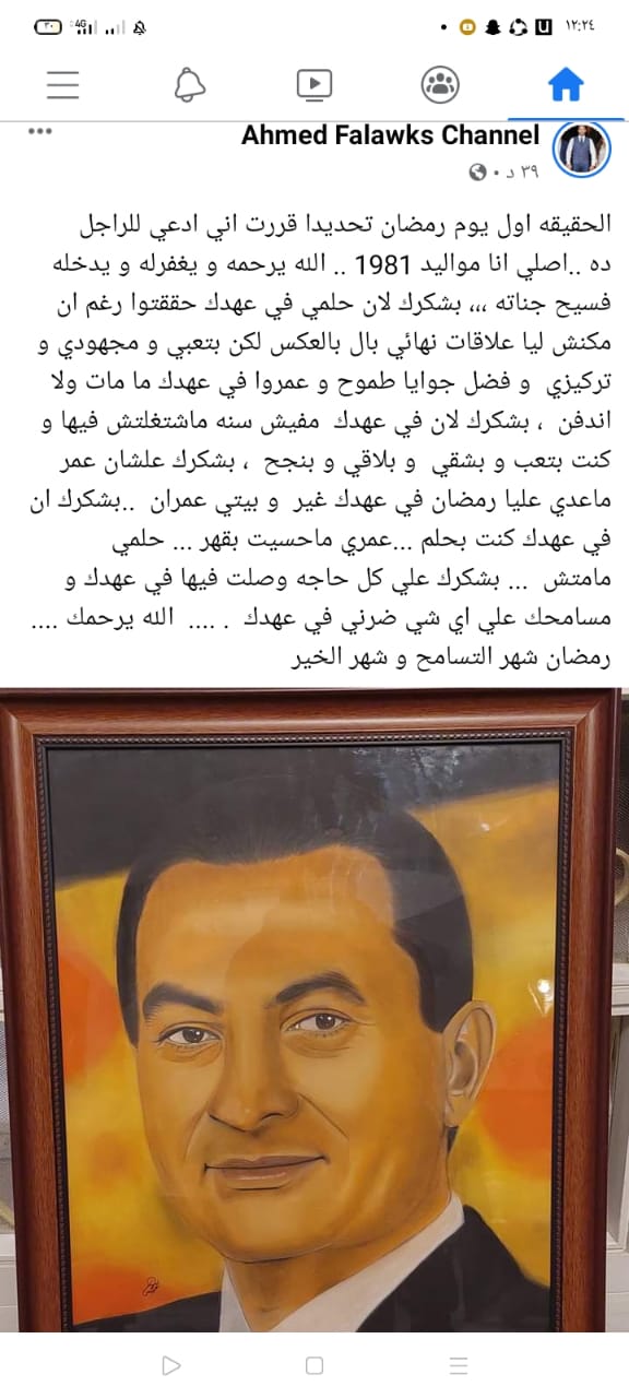 ونشر فلوكس صورة للرئيس مبارك، عبر حسابه الرسمي بموقع التواصل الاجتماعي "فيس بوك"، وعلق عليها قائلًا: "الحقيقة أول مرة يوم رمضان تحديدًا قررت أني أدعي للراجل ده.. أصلي أنا مواليد 1981، الله يرحمه ويغفر له ويدخله فسيح جناته".