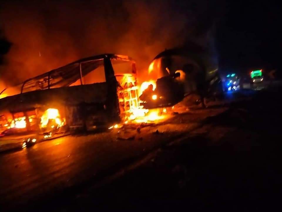 لقى 5 أشخاص مصرعهم حرقًا، منذ قليل، في حادث تصادم بين سيارة نقل وأتوبيس رحلات على طريق أسيوط الصحراوي، بدائرة المركز.