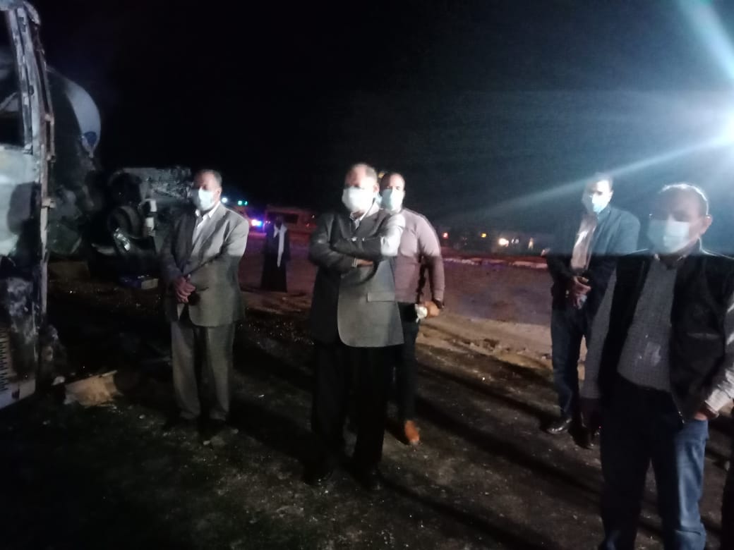 رافق المحافظ فى موقع الحادث اللواء أسعد الذكير مدير أمن أسيوط والمهندس شاكر يونس سكرتير عام المحافظة والمهندس نبيل الطيبى السكرتير العام المساعد والعميد إيهاب ثروت مدير ادارة الحماية المدنية، والعميد ايهاب الفى مدير ادارة المرور.
