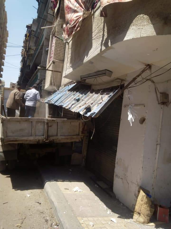 استجابة لشكاوى المواطنين.. إزالة سقف حديدي يمثل خطورة على المارة بالإسكندرية